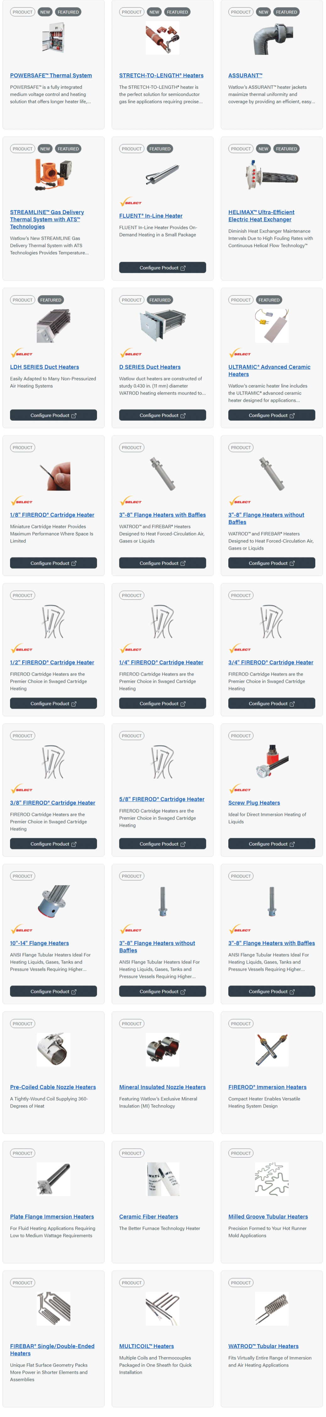 As a world-class industrial technology and thermal products leader, Watlow designs and manufactures heating solutions consisting primarily of electric resistive heaters, temperature sensors, temperature and power controllers and supporting software – all the components of a thermal system. They design to optimize thermal performance, decrease design time and improve the efficiency of products and applications. Contact Merrimac Industrial Sales to purchase the full line of Watlow products.